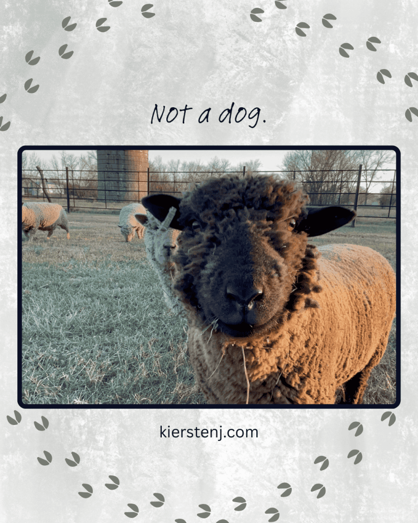 Even the ewes are not going to show dog behavior. Ewes are going to show us they’re happy and comfortable by acting like we’re not there. They will graze, heads down, unthreatened, in a perfect display of Zen-like chill. Nothing to see here, folks. We’re just eating grass. Chewing cud. Gestating.