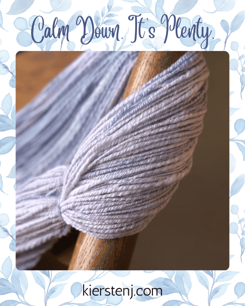 Then, about two ounces into the first braid of roving, I realized I needed to chill out and do some mathing. I usually get over 200 yards on a “normal” spin of four ounces of fiber. That’s 600 feet. It’s not going to take more than one foot of yarn for a very simple tied on bit of yarn on a bookmark.