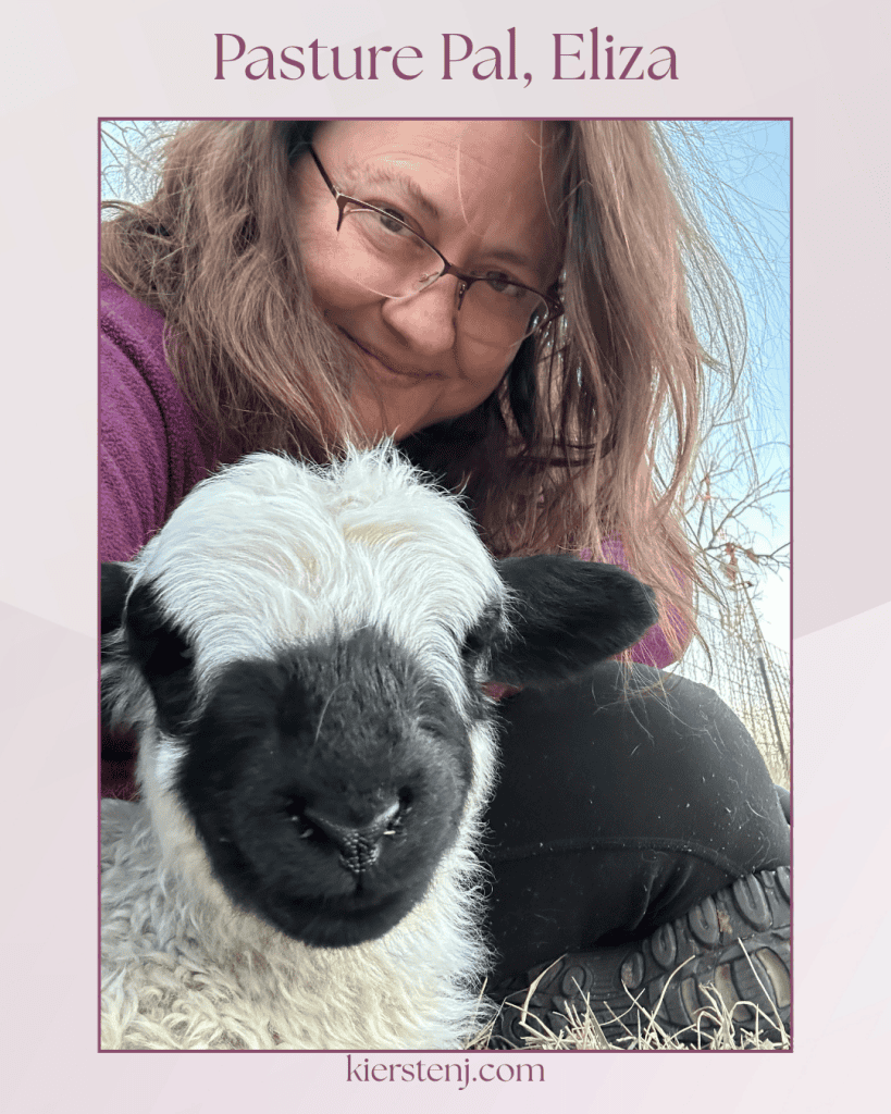 • The soft, warm weight of Eliza as she curls up against my leg in the pasture to rest.