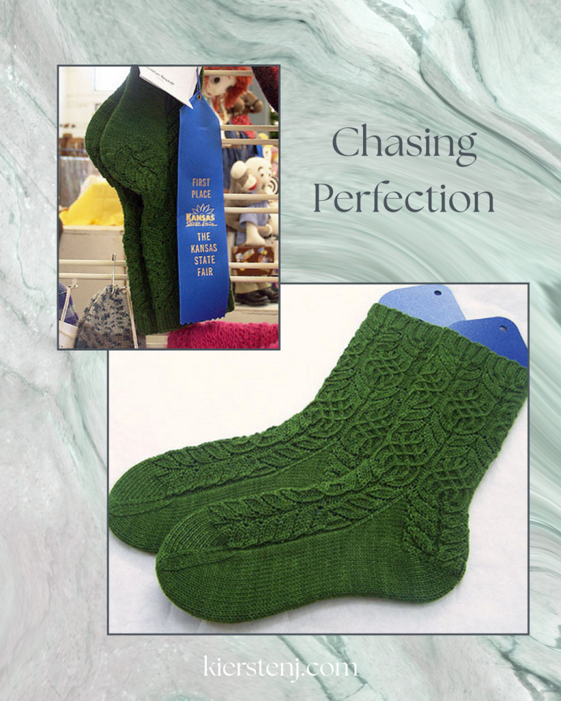 One of the best examples I have of this is the first pair of socks I entered into the State Fair. They were going to be perfect. Flawless. And I made them as exactly correct as I was capable of making a pair of socks, in a complicated pattern with yarn that was designed to show any flaw like it had neon arrows pointing to it.